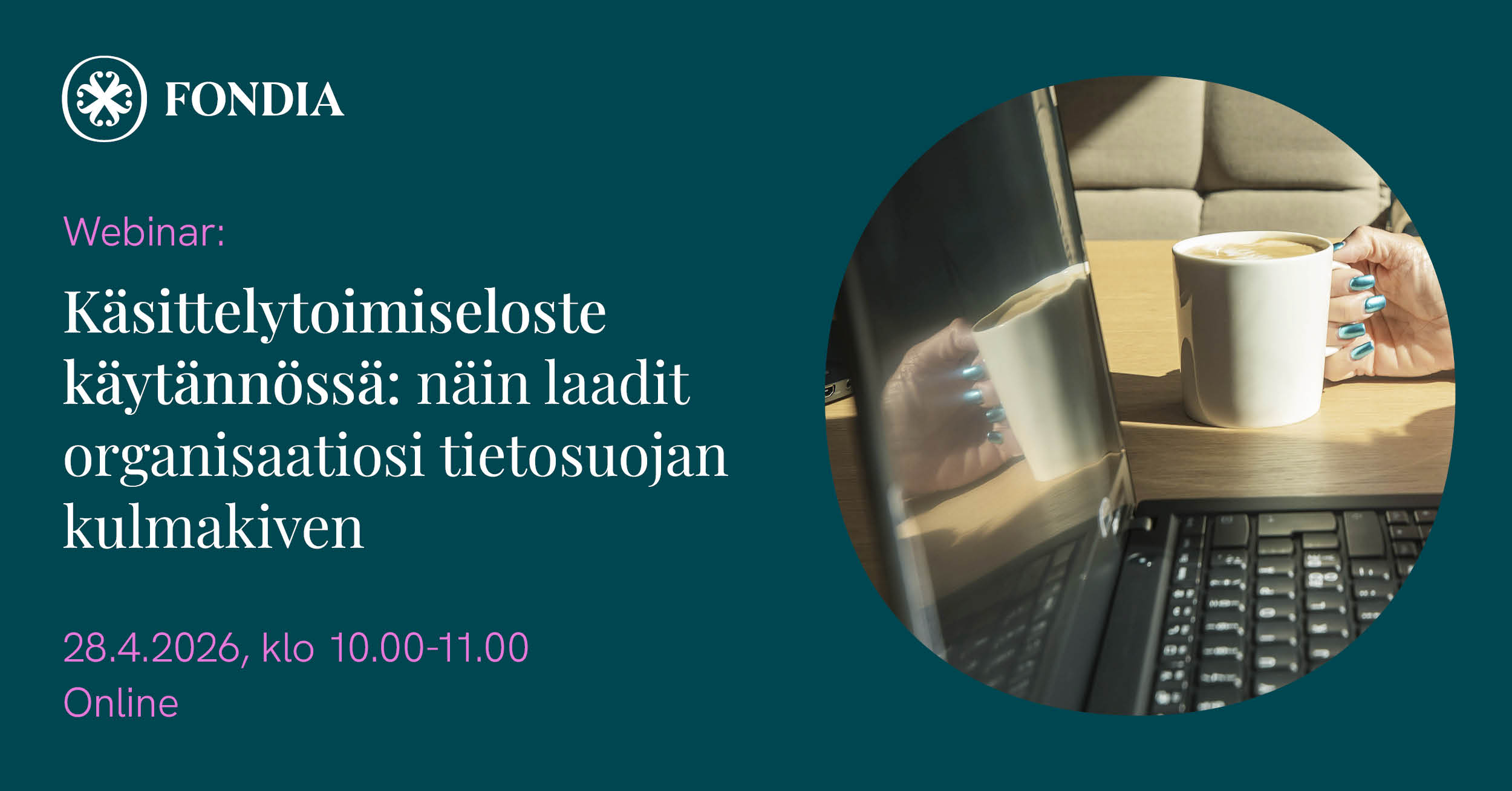 Tässä käytännönläheisessä webinaarissa Fondian tietosuoja-asiantuntijat Maria Nordberg ja Karoliina Vesa kertovat, miten käsittelytoimiseloste kannattaa laatia ja pitää ajan tasalla niin, että se tukee organisaation tietosuojatyötä käytännössä.
